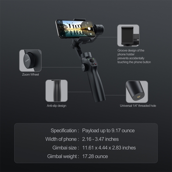 • 3-Axis handheld stabilizing Smartphone gimbal